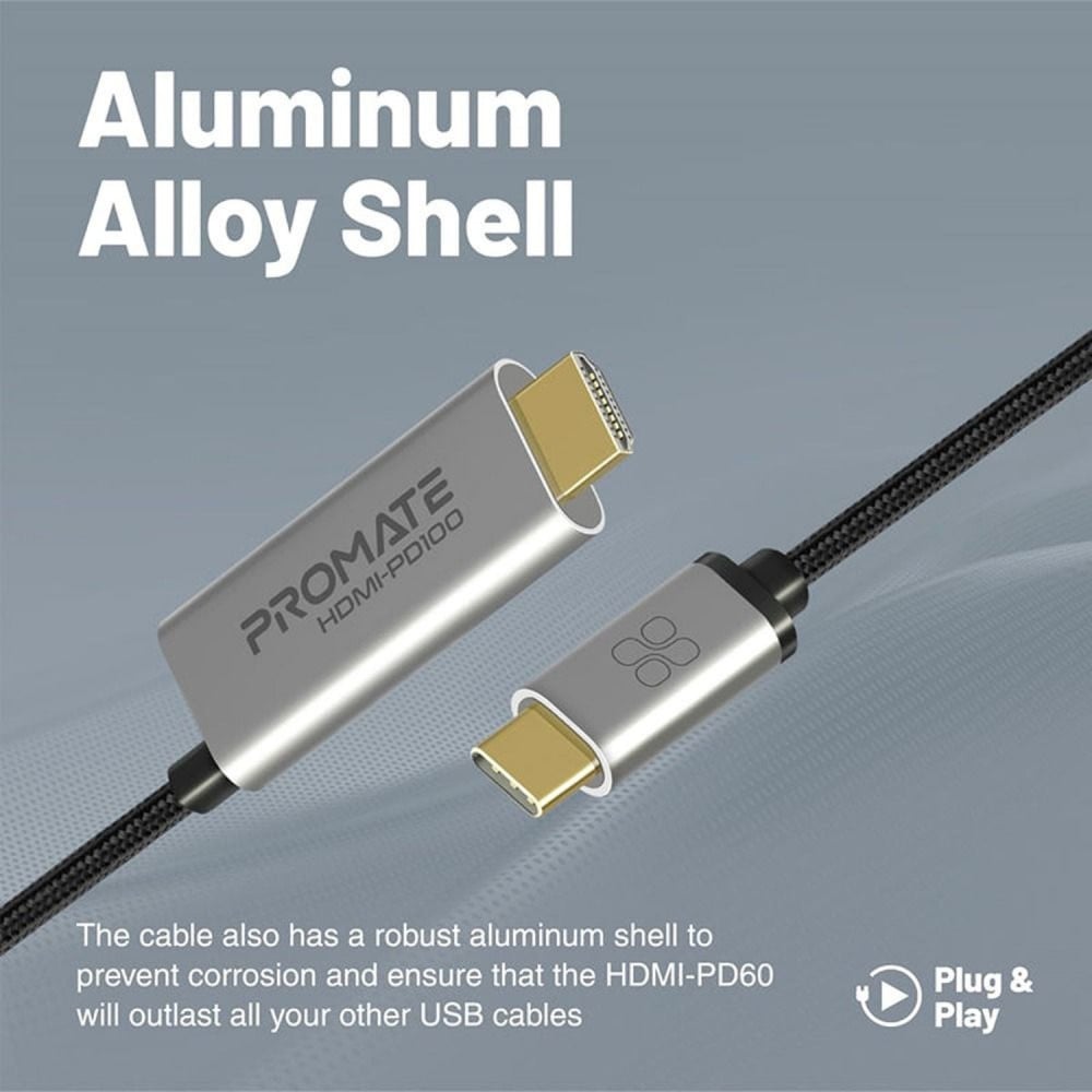 بروميت كابل USB-C إلى إتش دي إم آي - PD100 - رمادي