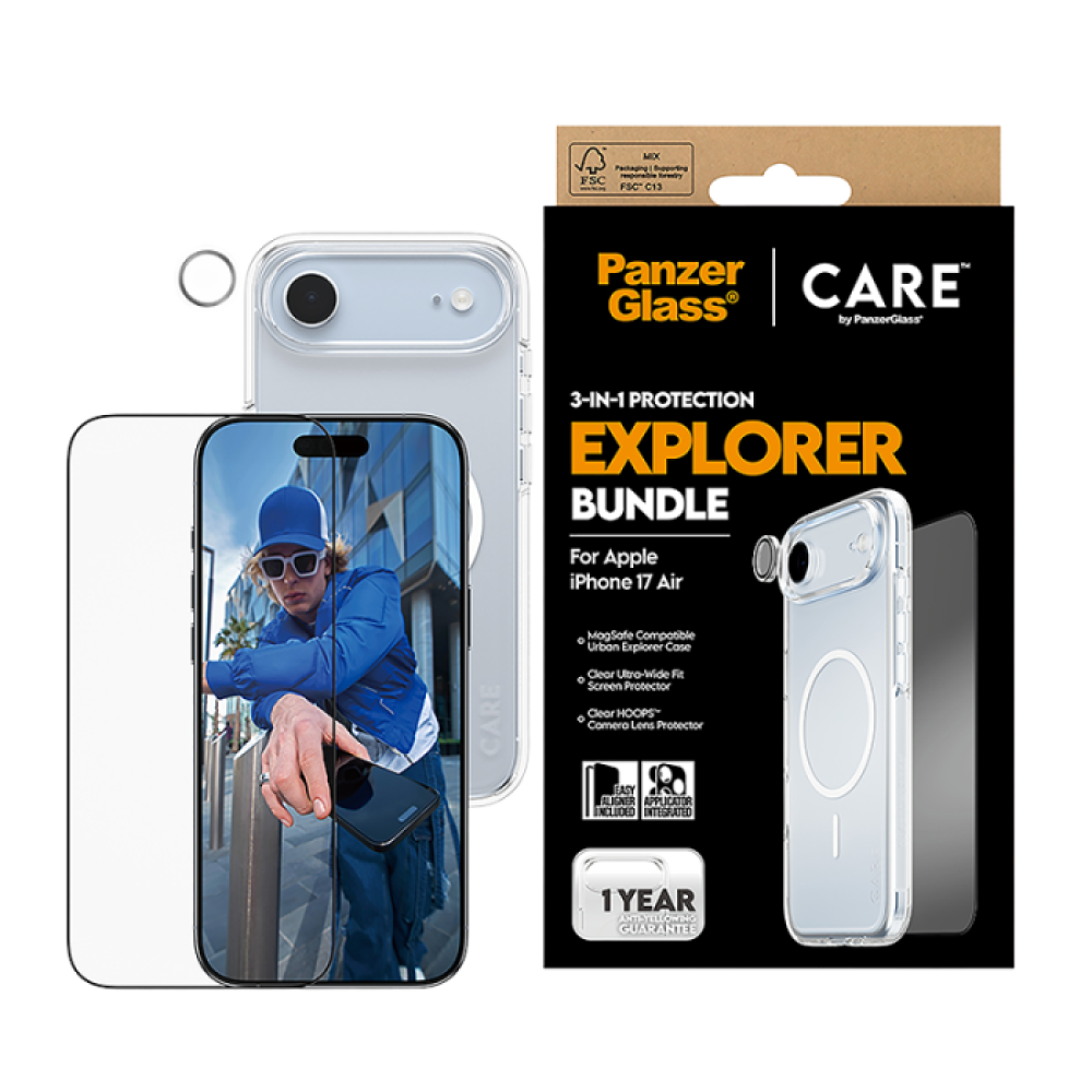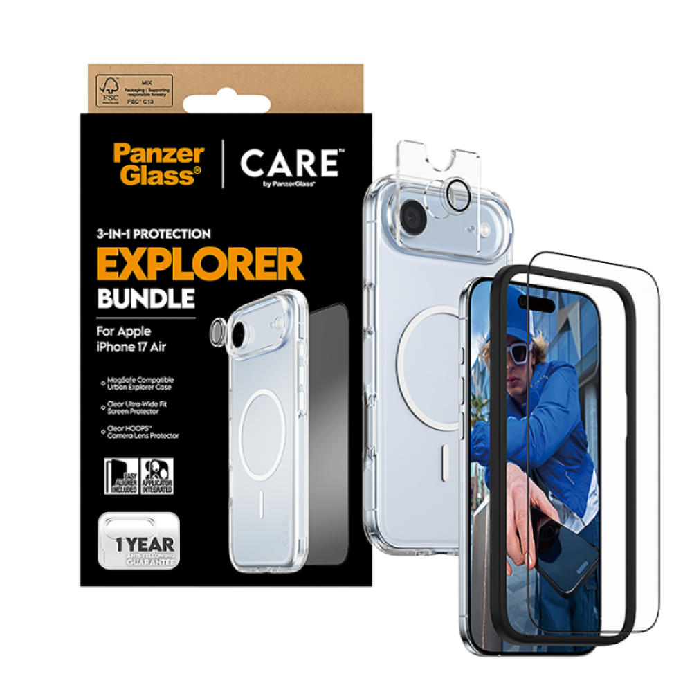 بكج حماية بانزر جلاس CARE يدعم MagSafe اكسبلور 3 في 1 ايفون 17 اير - شفاف