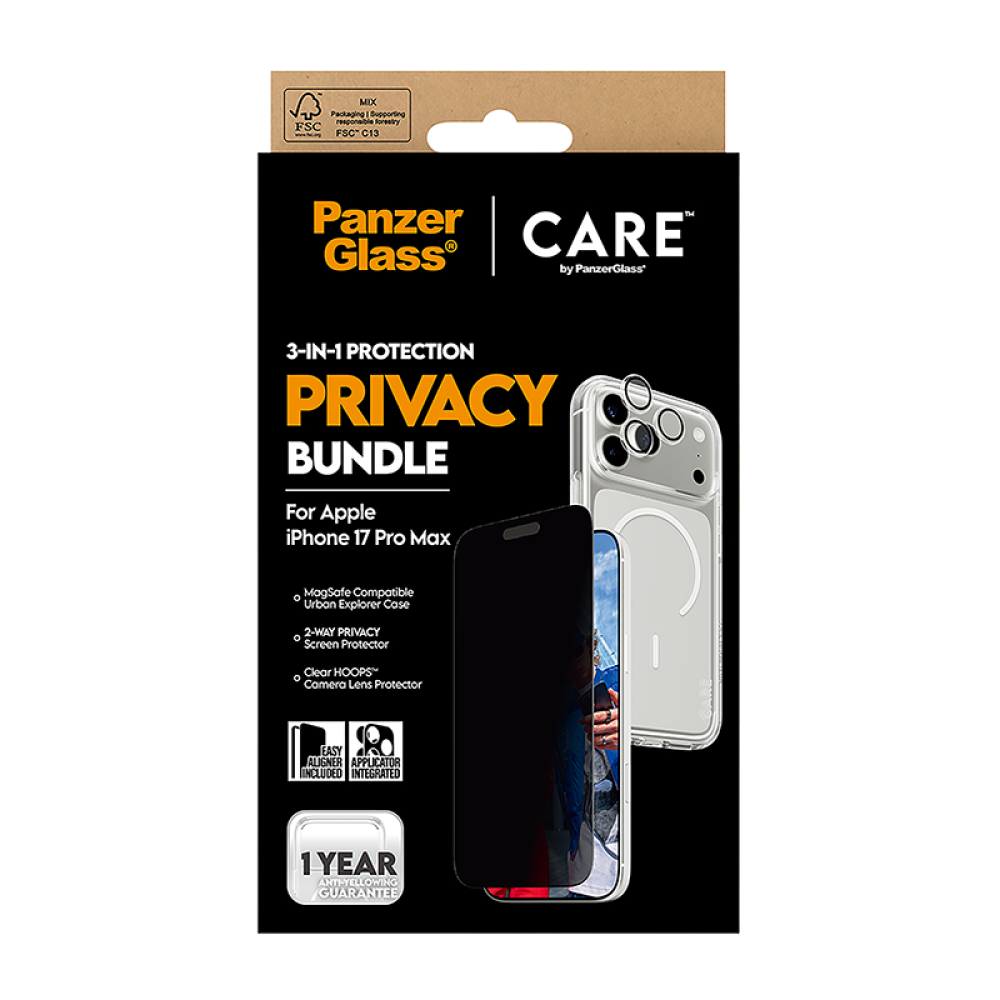 بكج حماية بانزر جلاس CARE يدعم MagSafe فلاقشيب اكسبلورر 3 في 1 ايفون 17 - شفاف