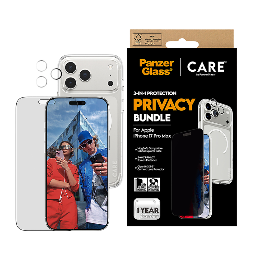 بكج حماية بانزر جلاس CARE يدعم MagSafe فلاقشيب 3 في 1 ايفون 17 برو ماكس - حفظ الخصوصية
