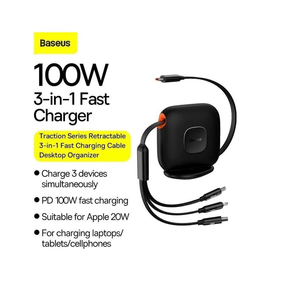 بيسوس كيبل شحن تايب سي 3في1 قابل للسحب 100واط 1.7متر اسود