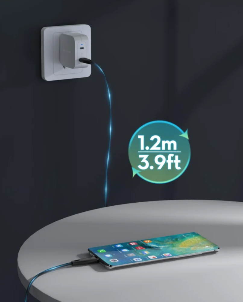 احصل على شحن سريع من كيبل راف باور تايب سي بقوة 100 واط يؤمن لك سرعة شحن هائلة وكفاءة في المزامنة وبإمكانك الشحن ونقل البيانات بوقت واحد وتم اختبار الكيبل ليتحمل أكثر من 50000 انحناء ومصنوع من النايلون بطول 1.5 متر وهو يتحمل الاستخدام اليومي الأكثر صرامة ويتمتع بالمتانة الفائقة