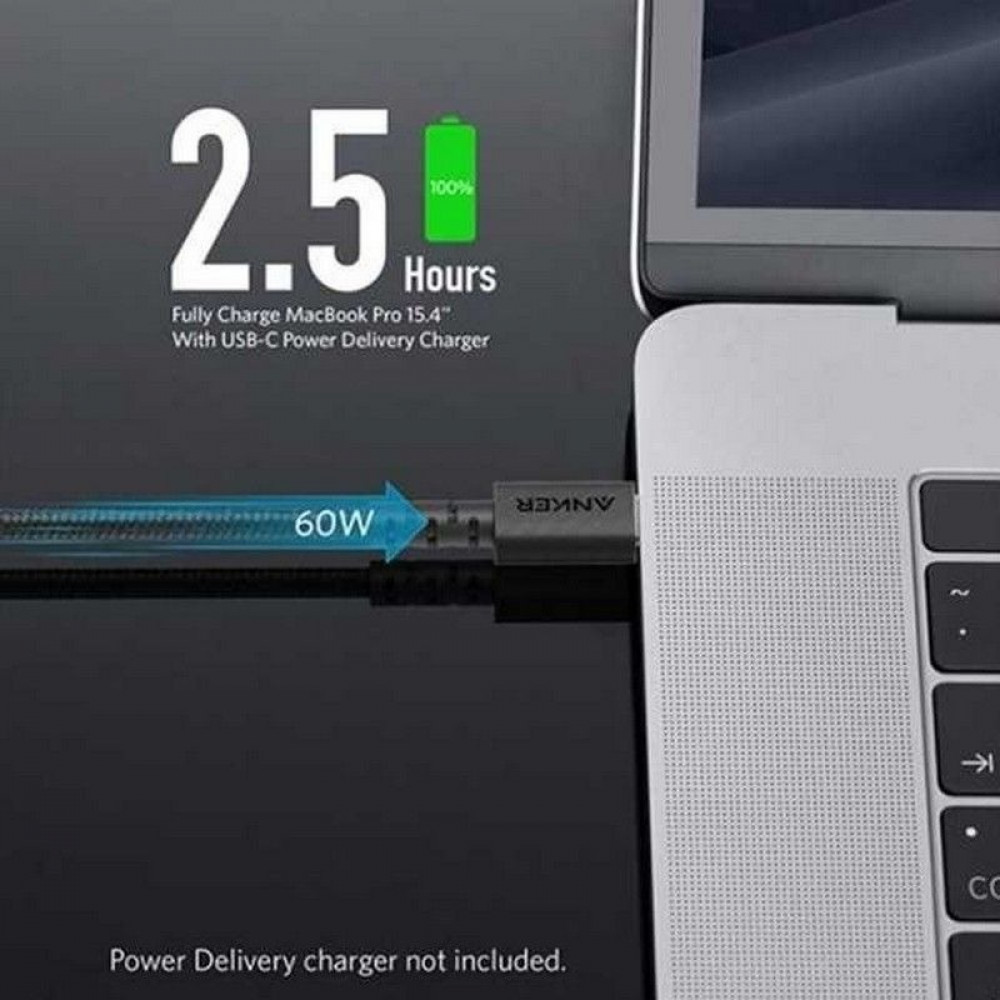 انكر سلك شاحن باورلاين سيليكت بلس من Type-C الى Type-C بطول 90 سم - اسود