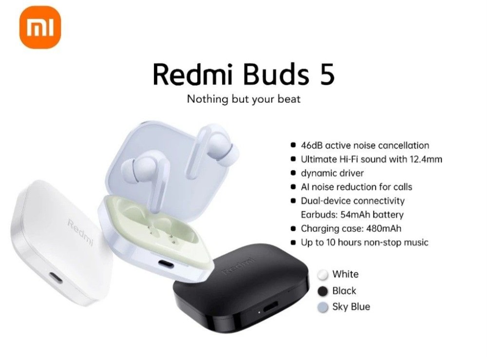 السماعات اللاسلكية Redmi Buds 5 تقدم مجموعة مذهلة من الميزات. إليك وصف مفصل للمنتج:
