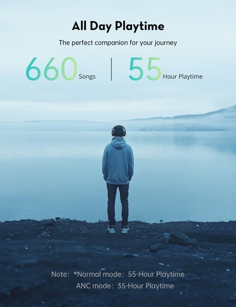 - وقت اللعب الطويل: استمتع بـ 55 ساعة من التشغيل في الوضع العادي، و 35 ساعة مع تفعيل إلغاء الضجيج النشط.