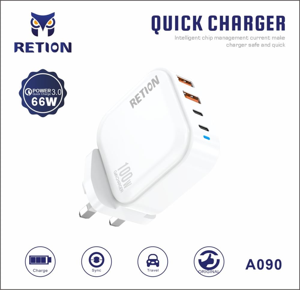 يعتبر شاحن RETION الخيار الأمثل لأولئك الذين يبحثون عن الأداء المتميز والجودة العالية في منتج واحد. مع تصميمه الأنيق وقوته الكبيرة، يمكنك الاعتماد عليه لتلبية جميع احتياجات الشحن الخاصة بك بسهولة وفعالية.