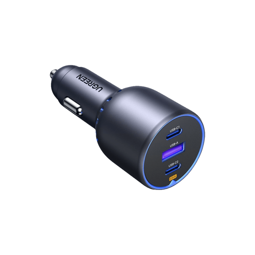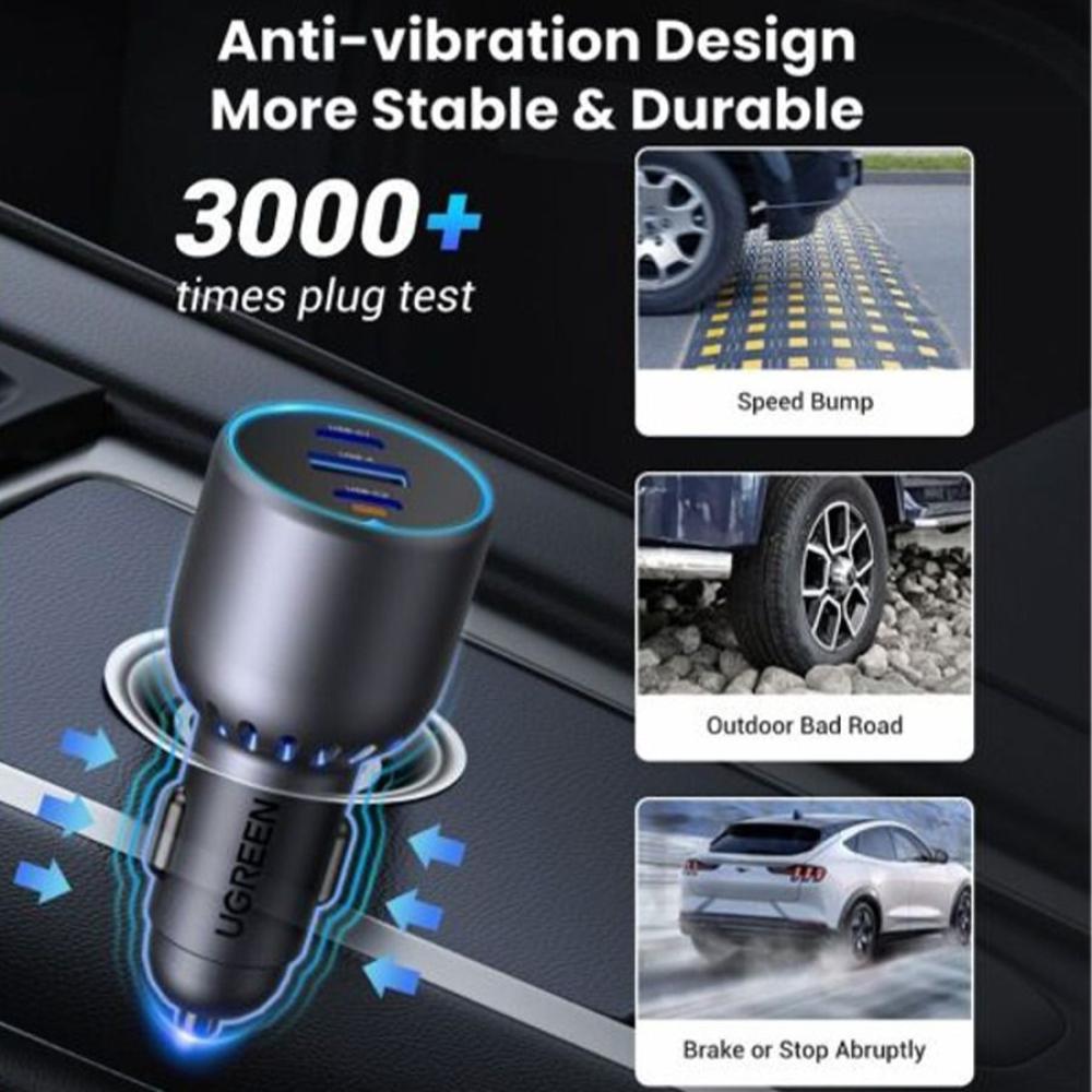 شاحن سيارة يوجرين بمنفذين USB-C وبمنفذ USB بقوة 75 واط - رمادي داكن