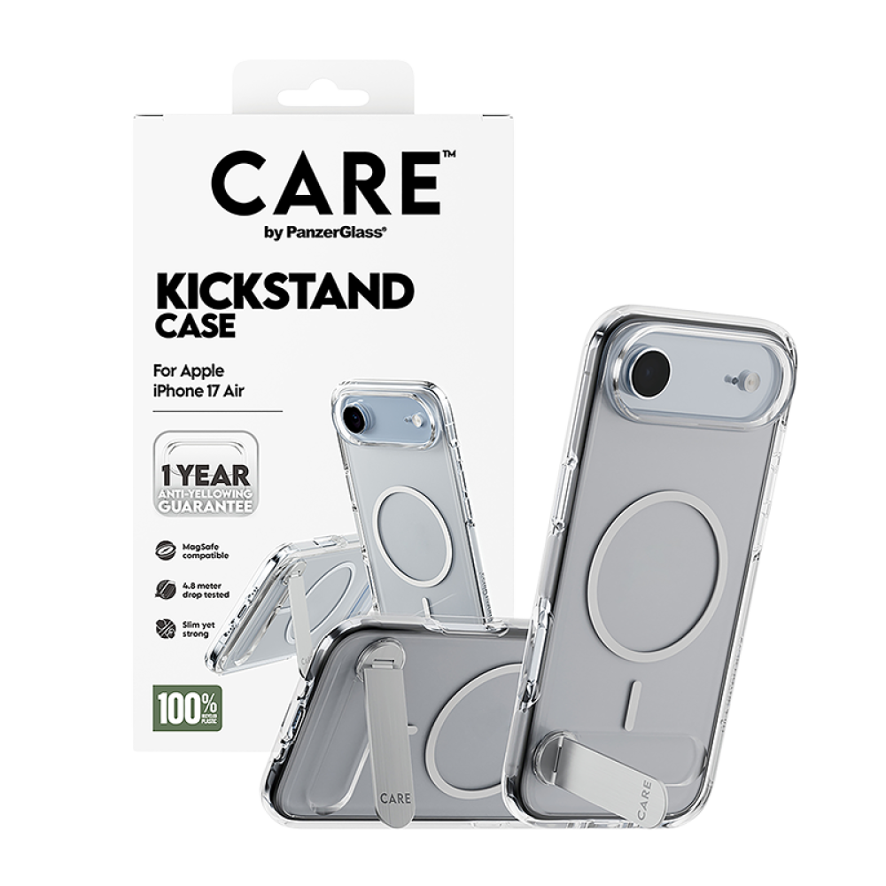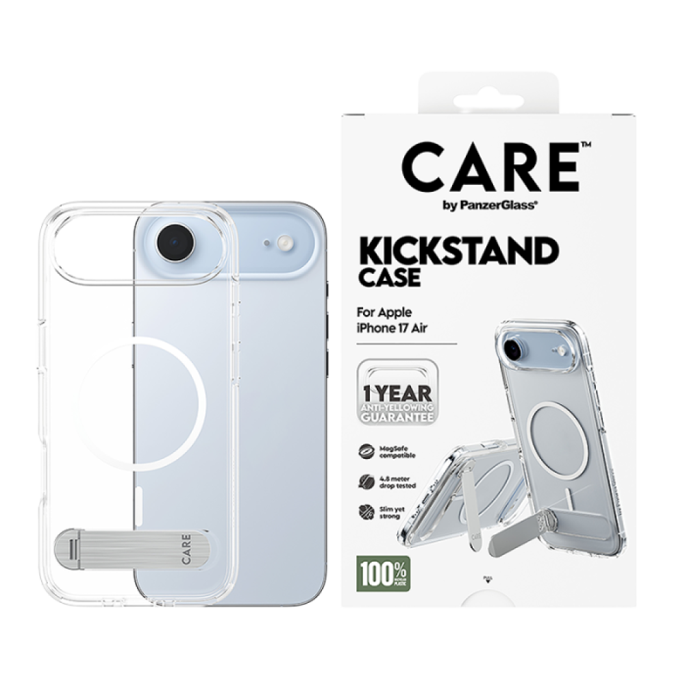 كفر حماية بانزر جلاس CARE فيتشر مع حامل يدعم MagSafe ايفون 17 اير - شفاف