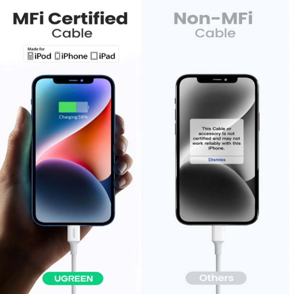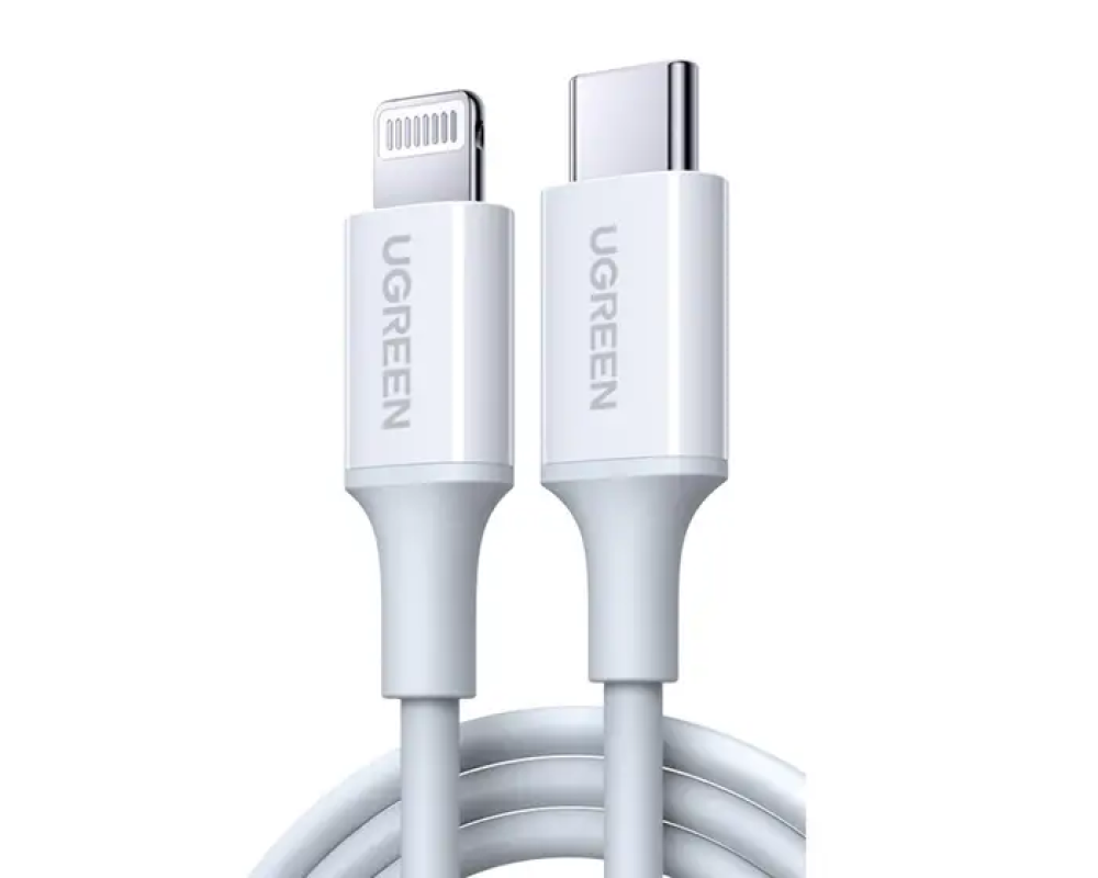 كيبل شحن من تايب سي إلى لايتننق 60 واط - أبيض - 1متر - UGREEN