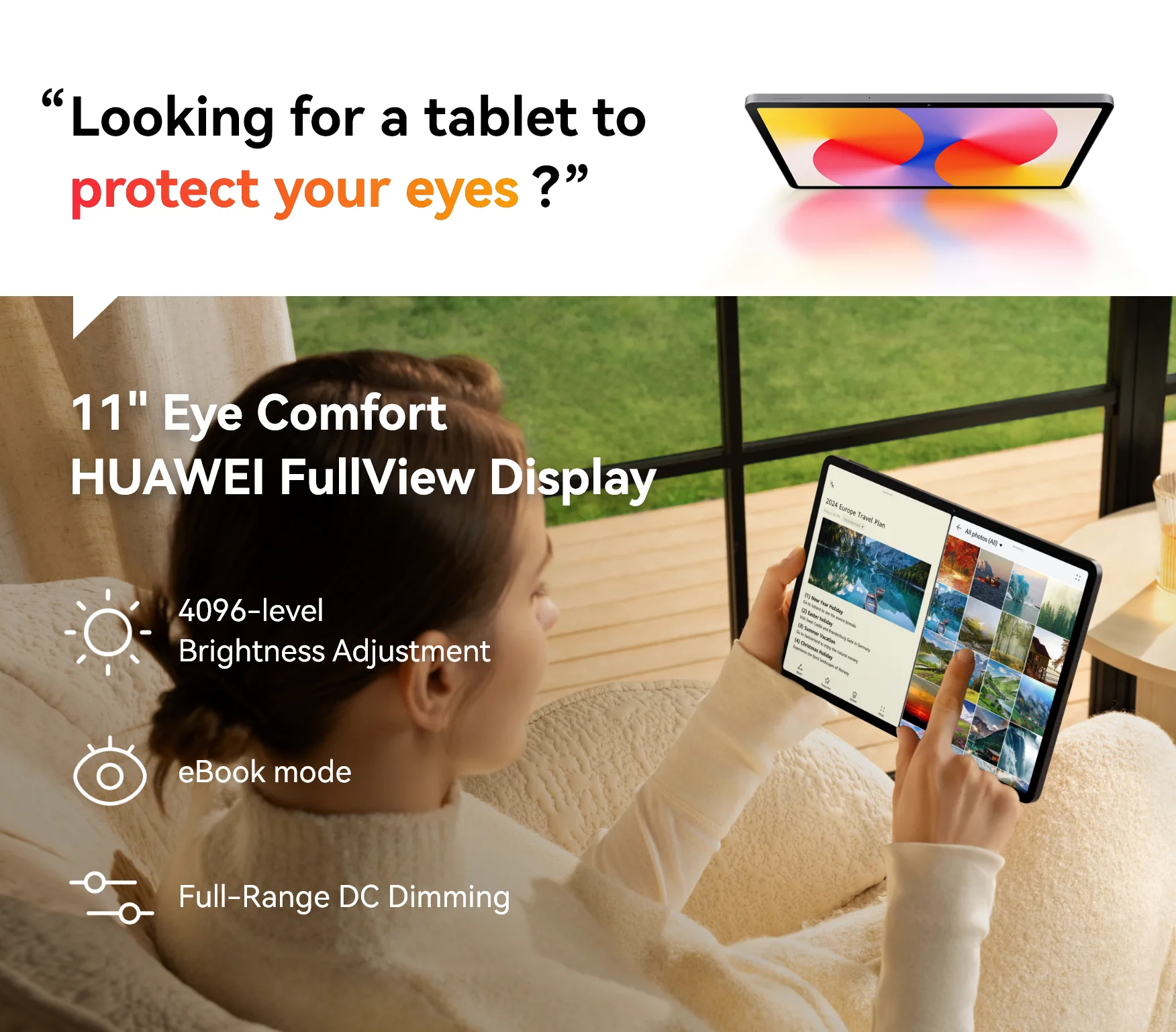 شاشة HUAWEI FullView مقاس 11 بوصة مريحة للعين