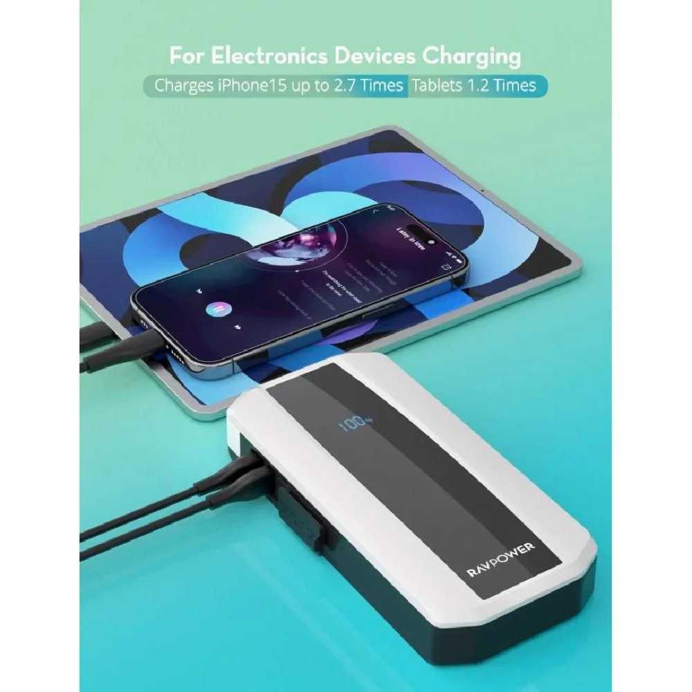 استعد لمواجهة أي طارئ على الطريق مع راف باور اشتراك سيارة وبطارية متنقلة بسعة كبيرة تبلغ 11000 مللي أمبير وقدرة 40.7 واط، الذي يجمع بين القوة والاعتمادية لتشغيل سيارتك وشحن أجهزتك المحمولة في أي وقت وأي مكان.